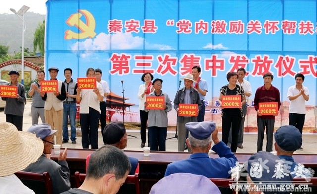 舉辦“黨內(nèi)激勵關(guān)懷幫扶基金”發(fā)放活動。6月29日,秦安縣舉行的第三批黨內(nèi)激勵關(guān)懷幫扶基金發(fā)放儀式在郭嘉鎮(zhèn)槐廟村人口文化廣場舉行,為郭嘉、魏店、王鋪和安伏四個鄉(xiāng)鎮(zhèn)老黨員、困難黨員、創(chuàng)業(yè)黨員代表發(fā)放了關(guān)懷、救助及貸款資金,進一步增強黨員的榮譽感、自豪感和歸屬感。