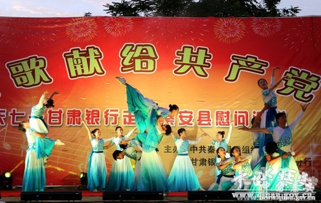 舉辦文藝匯演活動。6月30日晚,由秦安縣委組織部、甘肅銀行主辦的“贊歌獻給共產(chǎn)黨——慶七一甘肅銀行走進秦安縣慰問演出”在秦安縣興國文化廣場火熱舉行。 秦腔《紅燈記》、相聲《好好說話》,歌伴舞《陽光樂章》、川劇絕活《變臉》等各具特色的節(jié)目把現(xiàn)場氣氛推向一個又一個高潮。6月29日,魏店鄉(xiāng)舉辦慶祝建黨94周年主題文藝演出,一曲曲動人的旋律、一個個優(yōu)美的舞蹈,表達了對黨的生日的美好祝愿。當天晚上,西川鎮(zhèn)牌樓、川口村舉辦了慶七一文藝晚會。