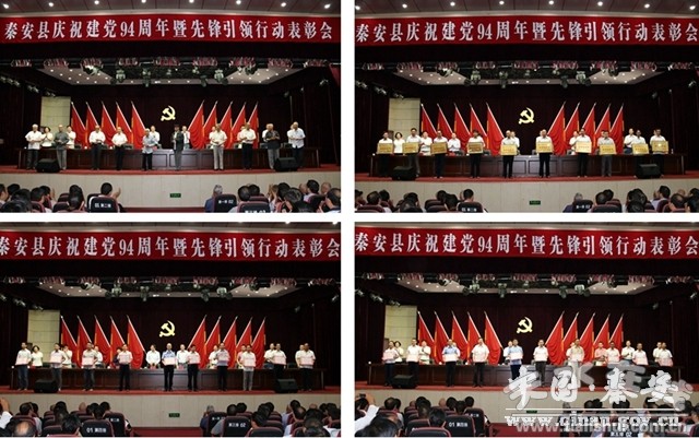 表彰一批先進典型。7月1日上午,秦安縣召開慶祝建黨94周年暨先鋒引領(lǐng)行動表彰大會,共同慶祝黨的生日,對近年來在先鋒引領(lǐng)行動中涌現(xiàn)出的先進組織和優(yōu)秀個人進行了表彰,授予“秦安先鋒號”、“秦安先鋒崗”、“優(yōu)秀機關(guān)黨組織書記”、“優(yōu)秀鄉(xiāng)鎮(zhèn)黨委書記、副書記”、優(yōu)秀村(社區(qū))黨組織書記”榮譽稱號。會議還為黨齡50周年以上的黨員頒發(fā)了獎杯,為專職化黨組織書記晉星頒證。