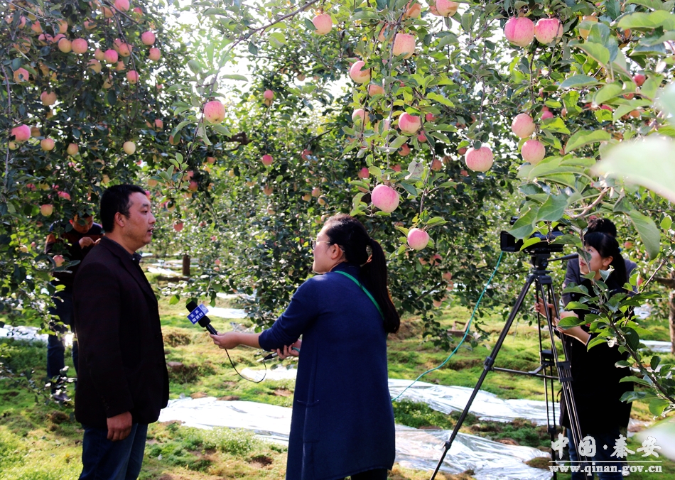 眼下正值蘋果收獲的季節(jié),在秦安蓮花鎮(zhèn)桑川村的郁閉果園改造的示范園里,紅彤彤的蘋果壓彎了樹頭,實在惹人喜愛,讓人垂涎欲滴。優(yōu)質(zhì)的果品質(zhì)量吸引了收購商紛至沓來,也吸引了眾多媒體的關(guān)注,10月24日,天水電視臺走進秦安縣蓮花鎮(zhèn)桑川村,就郁閉果園改造工作進行了實地采訪拍攝。
