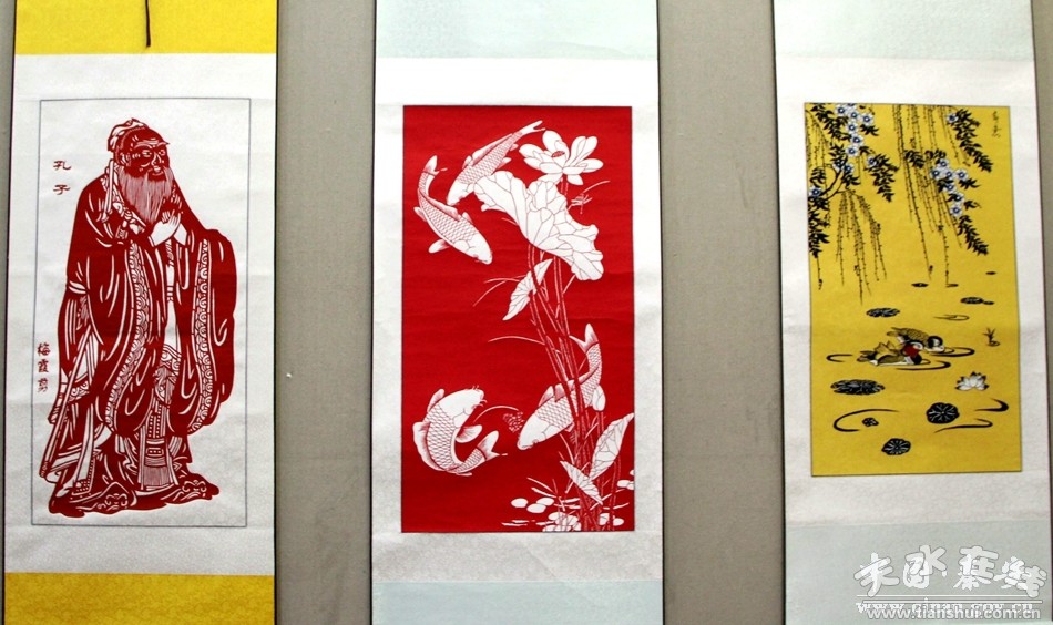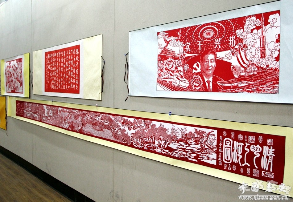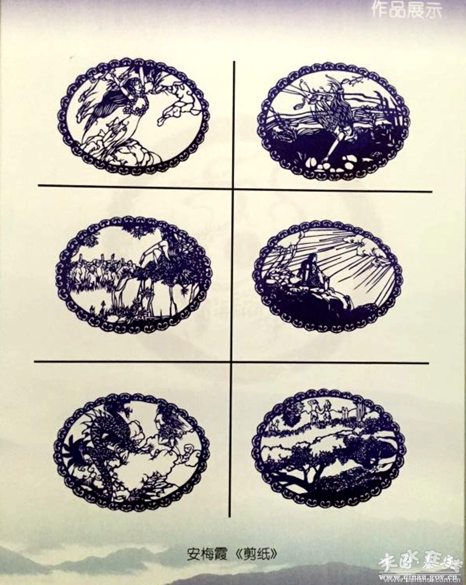 安梅霞的剪紙工藝,構(gòu)思巧妙、刀剪嚴(yán)謹(jǐn)、栩栩如生、富于境界,在傳統(tǒng)的底蘊中透溢出生活的自然美和純真美,具有鮮明的時代特色和創(chuàng)新精神,給古老的剪紙藝術(shù)賦予了新的時代內(nèi)涵。其中《八駿全圖》大氣磅礴,《十二生肖》精妙絕倫,《沁園春雪》、《花開富貴》、《社會主義核心價值觀》等各種書法繪畫、花草蟲魚作品惟妙惟肖、美輪美奐,更有反映當(dāng)?shù)貧v史文化、風(fēng)俗民情的《女媧補(bǔ)天》、《伏羲畫卦》、《大地灣彩陶》等創(chuàng)作,讓人津津樂道,贊不絕口。