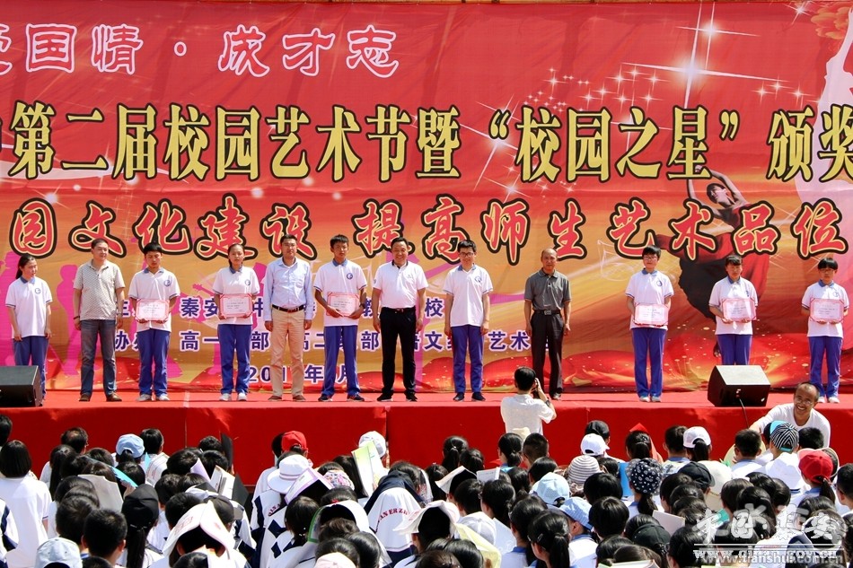 激昂的旋律,讓青春的熱血澎湃激蕩;歡快的舞步,讓智慧的心靈展翅飛翔。6月1日下午,秦安二中舉行第二屆校園藝術(shù)節(jié)暨“校園之星”頒獎典禮,縣委常委、宣傳部長徐東明出席本次活動并為獲得“學(xué)習(xí)之星”和“誠信之星”的學(xué)生頒獎,縣教體局、團(tuán)縣委等部門負(fù)責(zé)人,高一、高二級全體師生,家長代表共1000多人參加活動。