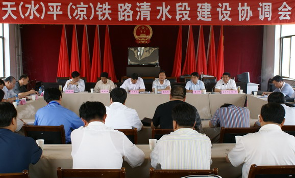 6月24日,清水縣召開(kāi)天(水)平(涼)鐵路清水段建設(shè)協(xié)調(diào)會(huì)議,縣委副書(shū)記、縣長(zhǎng)劉天波,縣委常委、副縣長(zhǎng)蔡虎林,縣委常委、政法委書(shū)記趙云清,副縣長(zhǎng)董小明出席會(huì)議?h委辦、縣政府辦、發(fā)改局等天平鐵路清水段建設(shè)領(lǐng)導(dǎo)小組成員單位主要負(fù)責(zé)人和天平公司、中鐵十九局、中鐵二十一局的主要領(lǐng)導(dǎo)參加了會(huì)議。