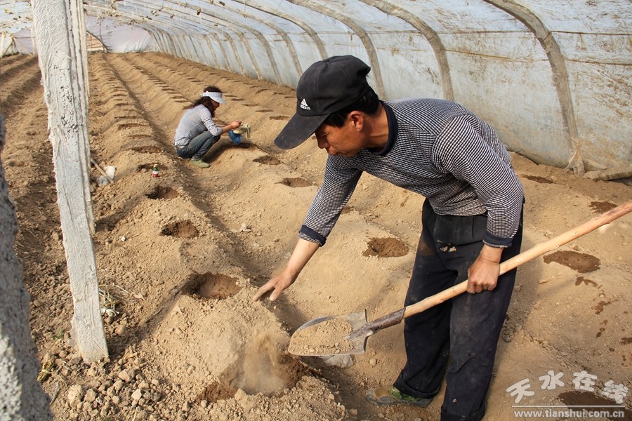 在溫溝設施蔬菜大棚內(nèi),正在栽植西瓜的溫溝村村民溫小康爽快地告訴記者,他家去年承包了4個棚,共種了兩茬,每個棚收入在4000-6000元之間,一年下來收入在25000元左右。今年,他又承包了3個棚,春季計劃種4棚西瓜、3棚辣椒,待西瓜成熟后再種一茬西紅柿,期望市場價格穩(wěn)定,從而帶來可觀的收入。