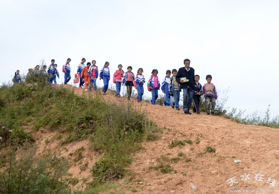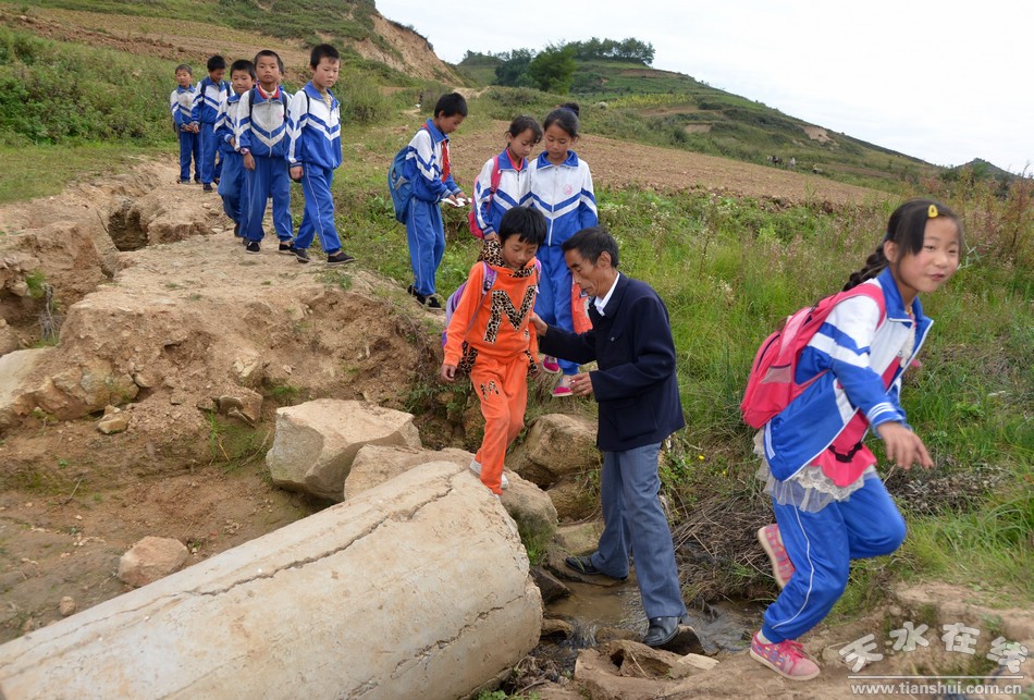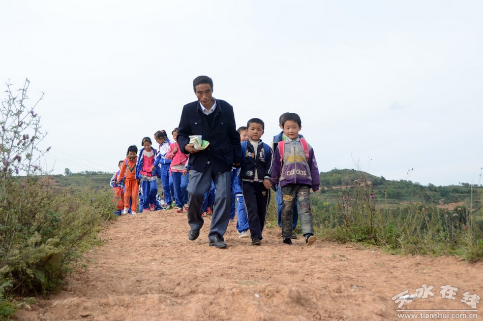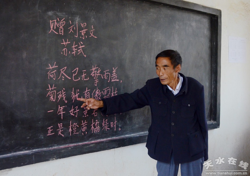 記者走進(jìn)清水縣草川鋪鄉(xiāng)馮山小學(xué),二年級(jí)教室一位正在上課的老師吸引了我們的眼球,他佝僂著身體在教室來回走動(dòng),孩子的目光全部凝聚在這位“爺爺”身上,朗朗的讀書聲傳出窗戶縈繞的耳邊,下課后,孩子圍著這位“爺爺”,你追我趕,甚是快樂,一副樸實(shí)而充滿希望的山村教學(xué)畫面呈現(xiàn)在眼前。