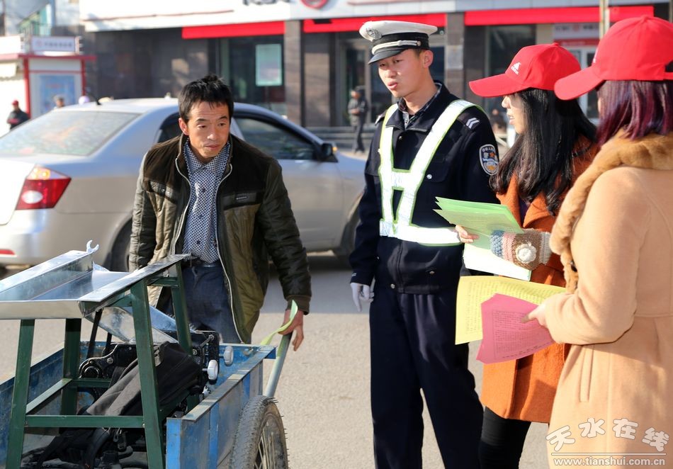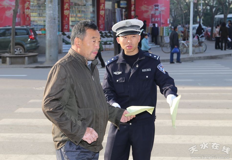 (發(fā)放宣傳單,引導(dǎo)群眾走斑馬線)