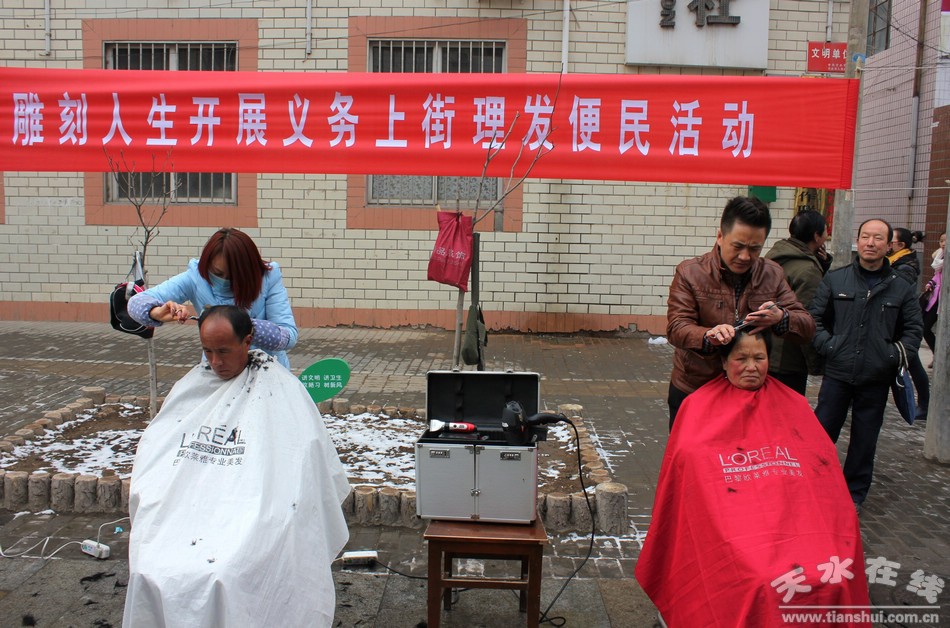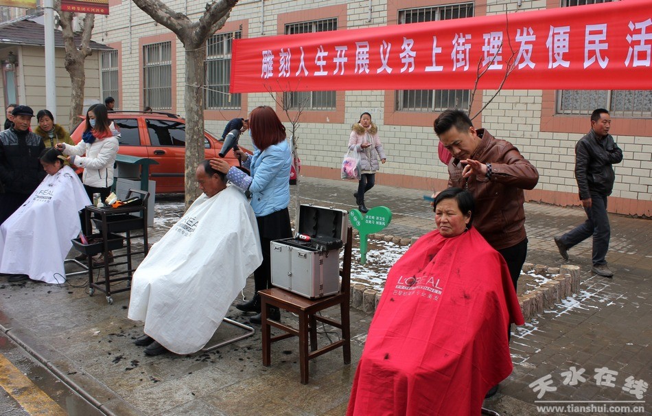 節(jié)氣已到驚蟄了,預(yù)示著萬物復(fù)蘇,春回大地,昨晚落下的雪也在暖暖的太陽的照耀下早已不見蹤跡。3月5日,清水縣信用聯(lián)社總行門前人流涌動(dòng),顯示出濃濃的節(jié)日氛圍,原來,清水縣雕刻人生理發(fā)館在這兒設(shè)攤,為過往群眾免費(fèi)理發(fā),在元宵佳節(jié)為廣大群眾送去節(jié)日的祝福。