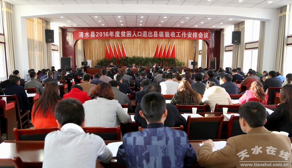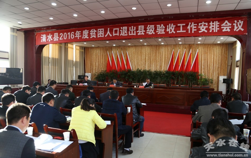 會(huì)議傳達(dá)學(xué)習(xí)了全市脫貧攻堅(jiān)領(lǐng)導(dǎo)小組(擴(kuò)大)會(huì)議上的講話精神,傳達(dá)了《甘肅省扶貧開發(fā)辦公室關(guān)于開展2016年度建檔立卡信息更新工作的通知》,宣讀了《清水縣2016年度貧困人口退出縣級(jí)驗(yàn)收工作方案》。