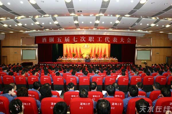 會(huì)議還聽取了集團(tuán)公司工會(huì)有關(guān)負(fù)責(zé)同志關(guān)于2007年《酒鋼集體合同》執(zhí)行情況的檢查報(bào)告暨2008年《酒鋼集體合同》修改情況說明,聽取了《酒鋼五屆六次職代會(huì)職工代表提案處理情況及五屆七次職代會(huì)職工代表提案征集情況的說明》。集團(tuán)公司總經(jīng)理助理以上領(lǐng)導(dǎo)、各廠礦以及公司機(jī)關(guān)部門負(fù)責(zé)人和職工代表共500余人參加會(huì)議。