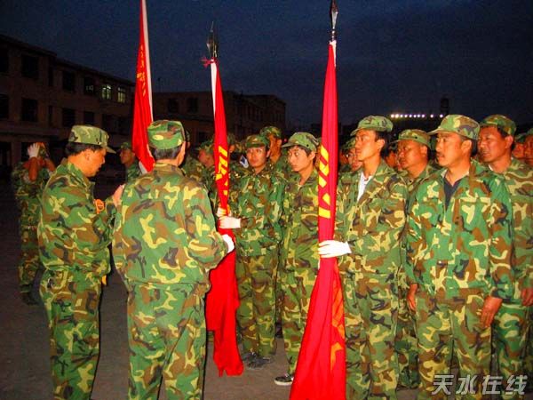 5月17日下午16時(shí),天水長城開關(guān)廠公司接到秦州區(qū)武裝部緊急命令:要求公司組織預(yù)編民兵人員20人到區(qū)武裝部集結(jié),組成抗震救災(zāi)小分隊(duì)前往天水火車站裝卸救災(zāi)物資。