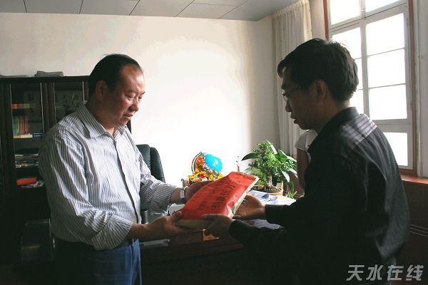 5月26日下午,蘭天集團副總劉曉武受蘭天集團董事長張建友的委托,把蘭天集團全體員工和蘭天城市廣場部分供應(yīng)商所捐的50000元人民幣交到了秦州教育局局長羅永安的手中。