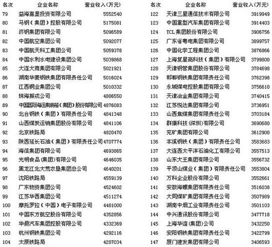 8月30日,由中國企業(yè)聯(lián)合會和中國企業(yè)家協(xié)會評選的2008中國企業(yè)500強(qiáng)在銀川發(fā)布。中國石油(行情 股吧)化工集團(tuán)公司以營業(yè)收入超過1.2萬億元的業(yè)績,再次穩(wěn)居綜合榜榜首。國家電網(wǎng)公司、中國石油天然氣集團(tuán)公司分別名列綜合榜第二名和第三名。