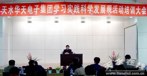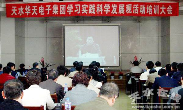 2009年3月21日上午9:30分,天水華天電子集團(tuán)學(xué)習(xí)實(shí)踐科學(xué)發(fā)展觀活動(dòng)培訓(xùn)大會(huì)在華天公寓6樓會(huì)議室召開,集團(tuán)高管、全體中層干部和各黨支部書記近110人參加了培訓(xùn)大會(huì)。