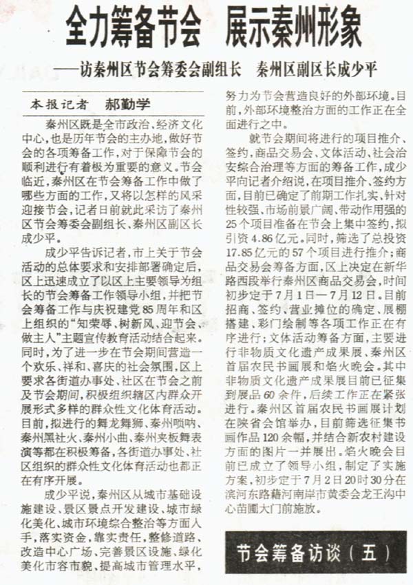 ——訪秦州區(qū)節(jié)會籌委會副組長 秦州區(qū)副區(qū)長成少平