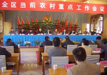 會(huì)議對(duì)全區(qū)學(xué)習(xí)宣傳貫徹十六屆六中全會(huì)精神作了安排部署,要求全區(qū)干部要把學(xué)習(xí)貫徹十六屆六中全會(huì)精神同謀劃好全區(qū)今后發(fā)展結(jié)合起來(lái),同做好年內(nèi)的各項(xiàng)工作結(jié)合起來(lái),從全區(qū)實(shí)際出發(fā),按照“十一五”規(guī)劃,緊緊圍繞和諧社會(huì)建設(shè)的核心和根本保證,即:增加農(nóng)民收入,公平正義等方面的精神,努力構(gòu)建和諧秦州。