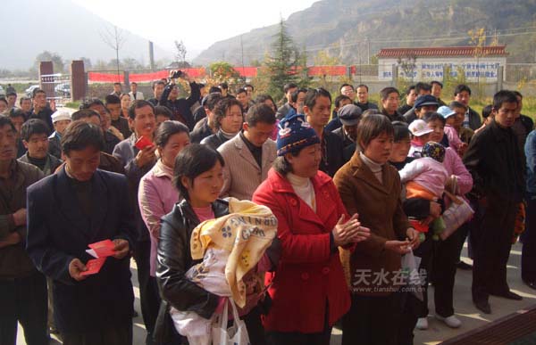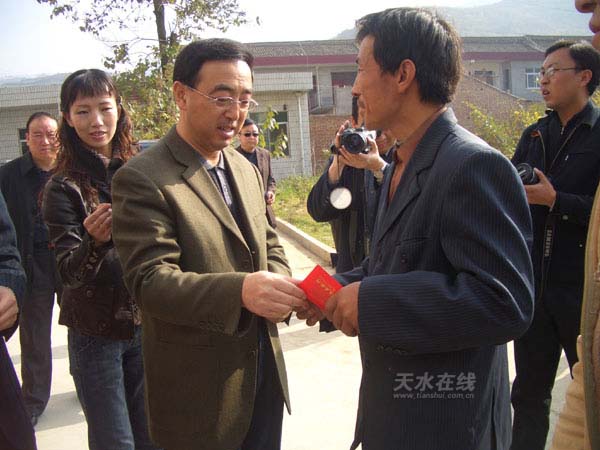 圖為秦州區(qū)委副書記、代區(qū)長周偉發(fā)放獎勵金