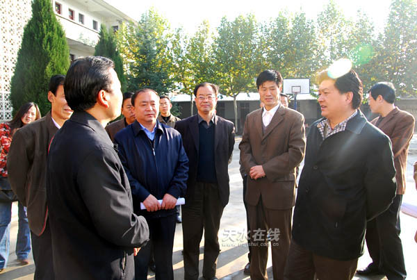 天水在線訊 10月24日上午,天水市四大組織領(lǐng)導(dǎo)帶領(lǐng)市教育局、市發(fā)改委、市財(cái)政局、市建設(shè)局、市規(guī)劃局、市國(guó)土資源局和市委、市政府研究室的領(lǐng)導(dǎo)到秦州區(qū)調(diào)研城區(qū)中小學(xué)教育工作。