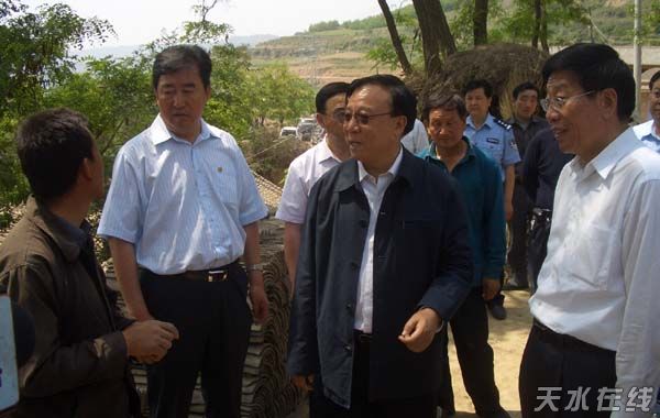 。5月17日上午, 甘肅省委書記、省人大常委會主任陸浩,省長徐守盛到皂郊鎮(zhèn)白家山村查看5.12地震災(zāi)情配圖:天水在線)
