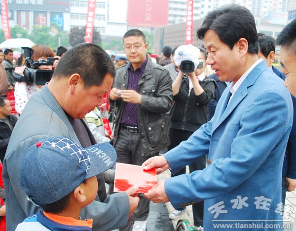 天水市委常委、秦州區(qū)委書記張明泰,市殘聯(lián)理事長溫曉東,市殘聯(lián)副理事長趙振林,區(qū)人大常委會主任楊虎林,區(qū)委副書記、區(qū)長周偉,區(qū)委副書記王小林,區(qū)委常委、常務(wù)副區(qū)長宋丕林,區(qū)委常委、組織部長李鵬凡,區(qū)人大常委會副主任胡秀玉,區(qū)政府副區(qū)長何寶平,區(qū)政協(xié)副主席王向梅及各鄉(xiāng)鎮(zhèn)、街道辦事處、社區(qū)和相關(guān)部門干部、群眾、受贈(zèng)殘疾人及其家屬2000多人參加捐助儀式。捐助儀式由區(qū)委常委、組織部長李鵬凡主持。區(qū)政府副區(qū)長、殘工委主任何寶平作了講話。群眾代表作了發(fā)言。