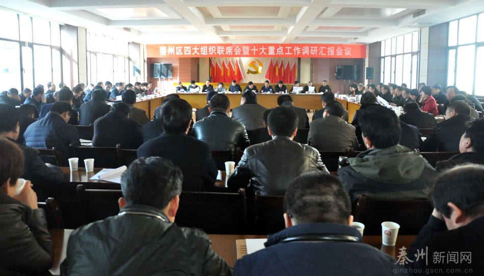 (秦州區(qū)外宣辦 辛志鋒)1月20日至21日,秦州區(qū)召開四大組織聯(lián)席會暨十大重點(diǎn)工作調(diào)研匯報(bào)會,聽取調(diào)研活動情況匯報(bào)和四大組織領(lǐng)導(dǎo)對全區(qū)經(jīng)濟(jì)社會發(fā)展的意見。薈萃眾智,集思廣益,科學(xué)決策,統(tǒng)籌規(guī)劃,全面總結(jié)謀劃當(dāng)前和今后一段時(shí)期全區(qū)經(jīng)濟(jì)社會發(fā)展各項(xiàng)工作。