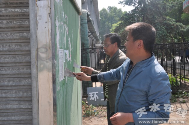 此次衛(wèi)生整治活動,主要對轄區(qū)主次干道兩側(cè)垃圾死角、小廣告、綠化帶雜草及垃圾進行清理,重點對伏羲文化旅游節(jié)祭祀活動的主要路徑女媧路沿線小區(qū)墻體、電桿上的小廣告、亂涂亂畫及沿線建筑、生活垃圾、餐館傾倒路面的油漬,集中人員、集中時間、集中力量進行全面清掃;顒又校腥四苗P子鏟除墻體、電線桿上的小廣告,有人用石灰水、涂料、水泥漿粉刷墻面的“牛皮癬”,有人用鐵鍬鏟除綠化帶里的雜草,參加整治活動的干部群眾組織到位、分工明確、積極主動,整個活動規(guī)范有序進行。
