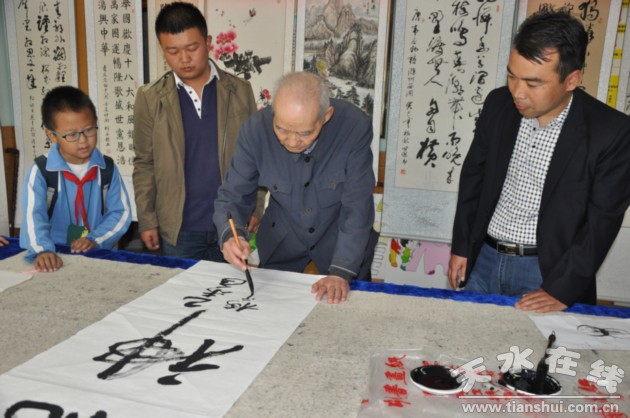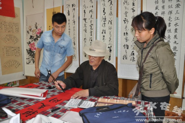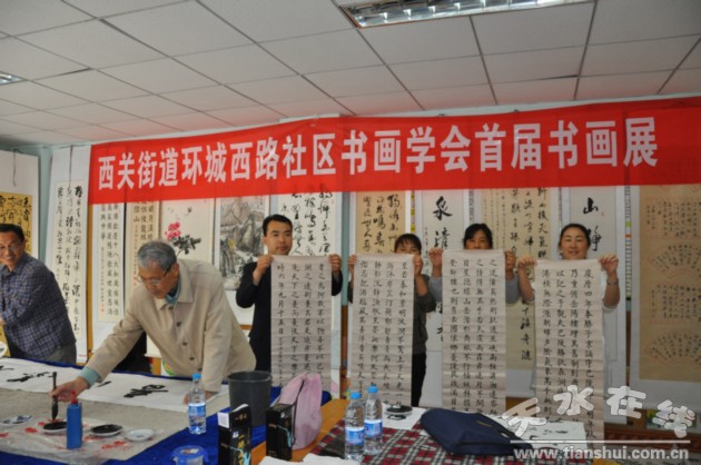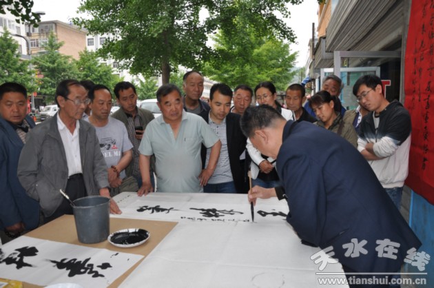 現(xiàn)場文化氣息濃厚,氣氛融洽。書畫家們激情滿懷,現(xiàn)場為居民寫字、作畫,對群眾的要求有求必應(yīng),甚至還有新房喬遷的對聯(lián),一幅幅字筆酣墨飽,一幅幅精美的畫作使人仿佛身臨其境,讓現(xiàn)場的所有人在書畫墨寶中享受到文化藝術(shù)帶來的樂趣。同時,以展覽典型作品的方式,書畫家與轄區(qū)的書畫愛好者交流創(chuàng)作經(jīng)驗,并對其創(chuàng)作給予指導(dǎo)。當(dāng)天上午共贈送書法作品和畫作60余幅,滿足了轄區(qū)居民的精神文化需求,受到了居民的一致好評。