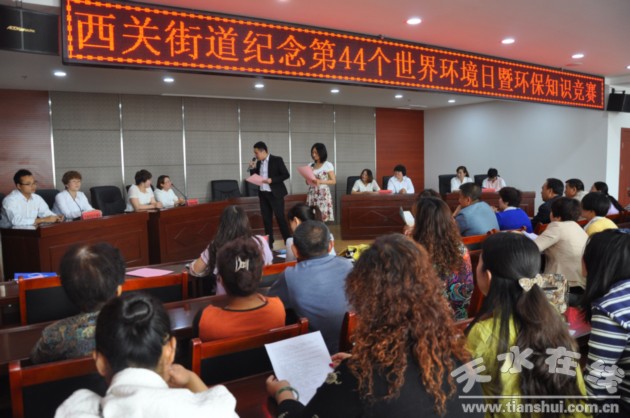 為營造節(jié)約資源和保護(hù)環(huán)境的輿論氛圍,倡導(dǎo)全社會(huì)共同行動(dòng),努力改善環(huán)境質(zhì)量,6月5日,西關(guān)街道舉辦紀(jì)念“六五”世界環(huán)境日暨環(huán)保知識(shí)競賽,該街道6個(gè)社區(qū)組成六支代表隊(duì)參賽。