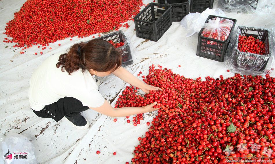 6月6日,秦州區(qū)煙鋪大櫻桃市場(chǎng),中晚熟品種全面上市,交易紅火。