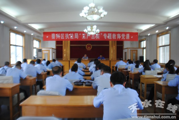 6月15日下午,秦州區(qū)執(zhí)法局開展專題教育,由局縣級(jí)領(lǐng)導(dǎo)給全局黨員作 “三嚴(yán)三實(shí)”黨課輔導(dǎo),就貫徹落實(shí)中央、省、市、區(qū)委關(guān)于開展“三嚴(yán)三實(shí)”專題教育活動(dòng)提出具體要求。