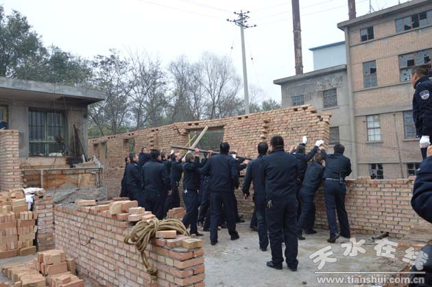 11月10日,秦州區(qū)執(zhí)法局在公安部門的配合下,組織30余名工作人員對(duì)位玉泉鎮(zhèn)王家磨村天水市衛(wèi)校南門附近一處違法建設(shè)依法強(qiáng)制拆除。