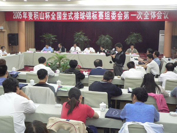 圖為9月4日下午在市政府招待所召開的2005年“麥積山杯”全國坐式排球錦標賽組委會第一次會議現(xiàn)場圖片
