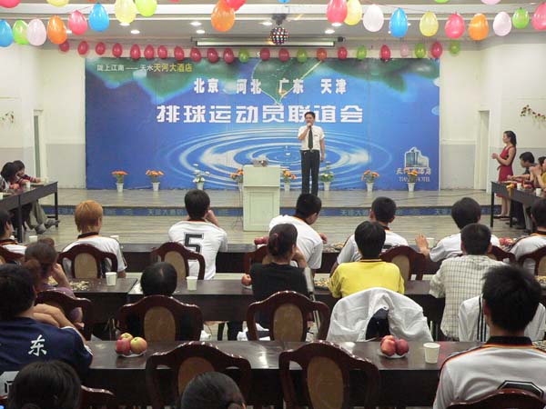 9月9日晚,天河大酒店,參加全國坐式排球賽的北京、河北、廣東、天津代表隊(duì)舉辦了聯(lián)誼會(huì)。