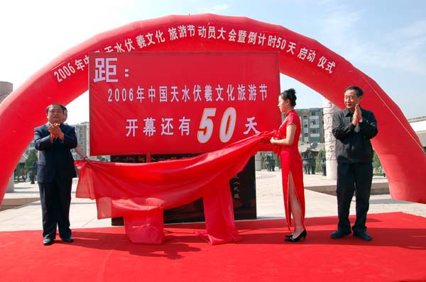 5月14日,2006年中國天水伏羲文化旅游節(jié)動員大會暨倒計時50天啟動儀式在伏羲廣場隆重舉行。