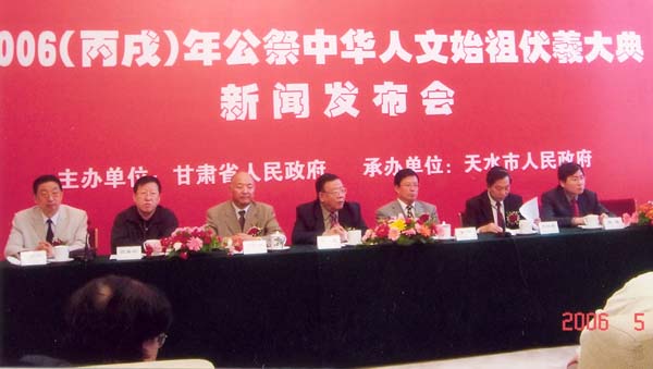 副省長(zhǎng)李膺、省政協(xié)副主席喇敏智出席新聞發(fā)布會(huì)。李膺在致辭中說(shuō),甘肅省委、省政府歷來(lái)高度重視伏羲文化研究、開(kāi)發(fā)和建設(shè),在政策和資金方面給予了大力支持,成立了由省四大班子領(lǐng)導(dǎo)參與的甘肅省中華伏羲文化開(kāi)發(fā)建設(shè)領(lǐng)導(dǎo)小組,建立了相關(guān)工作機(jī)構(gòu)。李膺希望新聞界朋友利用2006 (丙戌)年公祭中華人文始祖伏羲大典的契機(jī),關(guān)注甘肅經(jīng)濟(jì)社會(huì)發(fā)展,宣傳甘肅,宣傳天水,讓海內(nèi)外廣大華人更多地了解甘肅,了解天水。
