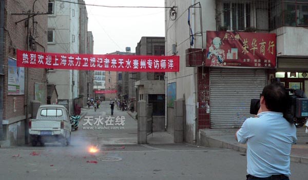 圖為東方衛(wèi)視記者在師洋家里采訪 配圖:天水在線