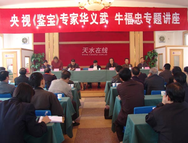 天水在線訊 10月20日上午,著名文物鑒定專家、央視《鑒寶》欄目特邀專家華義武、牛福忠在天水市秦州區(qū)舉辦了鑒寶專題講座會。會上,華義武和牛福忠就當前收藏知識進行了講解、并就與會者提出的問題進行了現(xiàn)場解答。