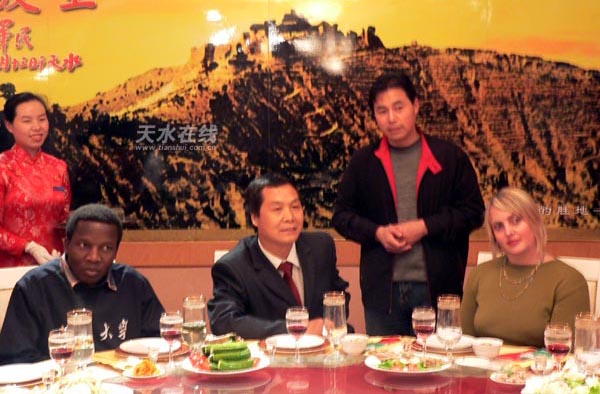 圖為天水市政府副秘書長仙松濤代表天水市政府宴請(qǐng)客人