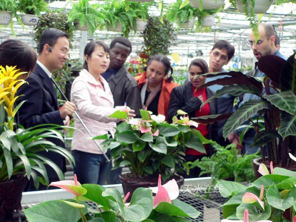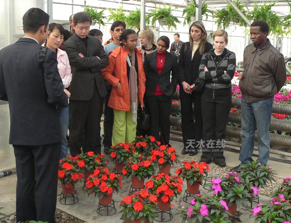 在天水農(nóng)業(yè)高新技術(shù)示范園區(qū)參觀花卉培植