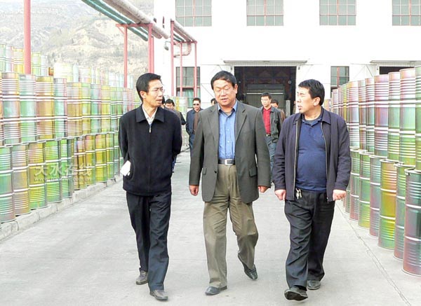 圖為省政府環(huán)境執(zhí)法督查組在天水長(zhǎng)城果汁飲料有限公司督查