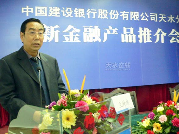 圖為建行天水分行黨委書記、行長(zhǎng)李忙來(lái)介紹新金融產(chǎn)品 配圖:天水在線