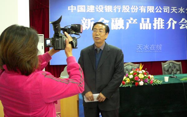 建行天水分行黨委書記、行長(zhǎng)李忙來(lái)接受天水電視臺(tái)記者采訪