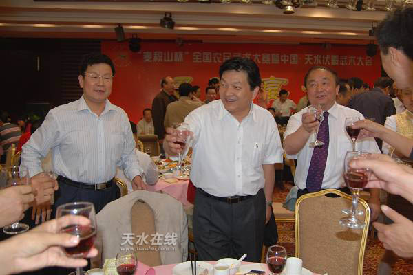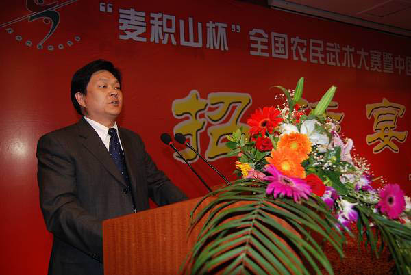 歡迎酒會由市委書記虞海燕主持。市委副書記、市長張廣智致祝酒辭。他說,天水人文薈萃,文化底蘊深厚,也是伏羲武術(shù)的發(fā)源地,此次全國農(nóng)民武術(shù)大賽能在天水舉辦,是國家體育總局、省委、省政府對天水的信任和鼓勵,我們將盡最大努力辦好此次大賽,爭取辦出品牌,辦出水平。