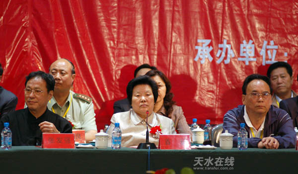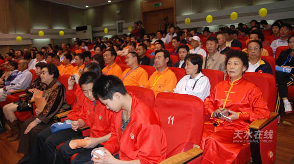 開幕式由省長助理郝遠(yuǎn)主持,全國政協(xié)常委、教科文衛(wèi)體委員會(huì)副主任、中國奧委會(huì)副主席張發(fā)強(qiáng),全國政協(xié)常委、文史和學(xué)習(xí)委員會(huì)副主任鄧成城,國際武術(shù)聯(lián)合會(huì)名譽(yù)主席、中國奧委會(huì)副主席李志堅(jiān),國際武術(shù)聯(lián)合會(huì)主席、國家體育總局副局長于再清,原武警總隊(duì)副司令員高文遠(yuǎn),原湖北省副省長李大強(qiáng),總后勤部直工部部長王保成,甘肅省委常委、副省長馮健身,省人大常委會(huì)副主任程有清,省政協(xié)副主席喇敏智,省政協(xié)副主席周宜興,國家體總相關(guān)部門領(lǐng)導(dǎo),參賽省、市、自治區(qū)有關(guān)部門領(lǐng)導(dǎo),天水市委書記虞海燕,市委副書記、市長張廣智,市政協(xié)主席馮沙駝等市四大組織在家領(lǐng)導(dǎo)出席開幕式。