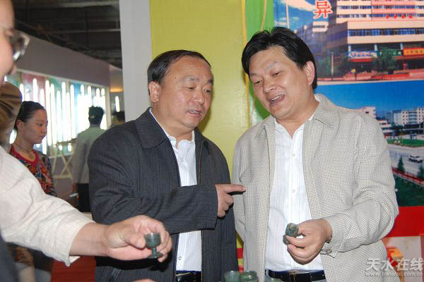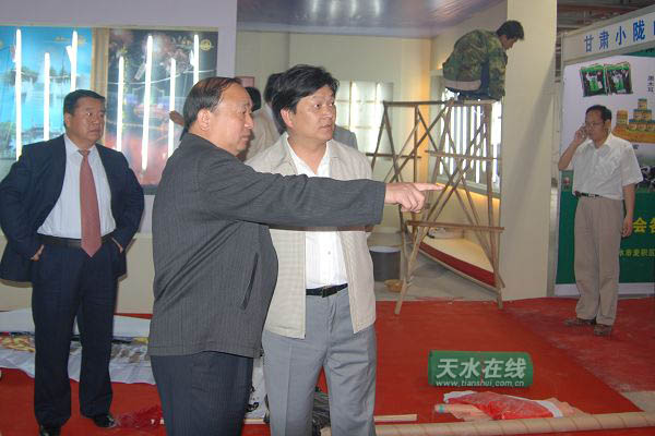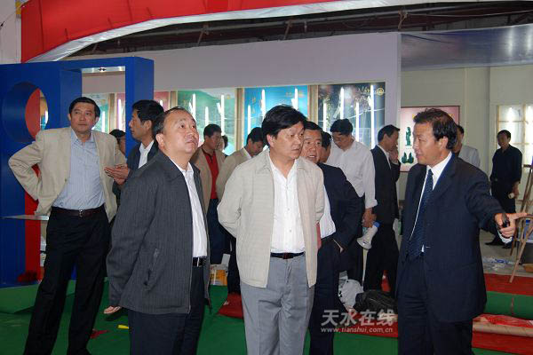 6月19日,市領(lǐng)導(dǎo)虞海燕、張廣智、張國華、郭奇若、趙衛(wèi)東對節(jié)會商品展示展銷活動的展館布展工作進(jìn)行了檢查驗(yàn)收。虞海燕要求各參展方要認(rèn)真按照布展方案,全力做好布展收尾工作。圖為市委書記虞海燕(右一)和市長張廣智正在觀看武山縣夜光杯。(記者 漆艷 攝)