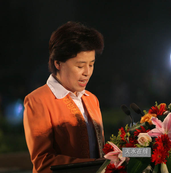 咸輝首先代表全國農民武術大賽暨中國·天水伏羲武術大會組委會向蒞臨天水指導這次賽會的各位領導致以誠摯的謝意,向取得優(yōu)異成績和獲得體育道德風尚獎的代表隊和運動員表示祝賀,向為本次賽會付出辛勤勞動的全體運動員、裁判員、教練員和工作人員表示感謝。她說,“麥積山杯”全國農民武術大賽暨中國·天水伏羲武術大會在國家體育總局的指導下,在省、市有關部門的認真組織下,在各參賽代表隊的共同努力下,順利完成了各項賽事。本次賽會共有19個省、市、自治區(qū)的42支代表隊和全國武術界的60多位知名專家學者參加,是近年來我省組織的規(guī)模最大、參賽人員最多的農民武術賽會。整個賽會組織周密、安排緊湊、服務熱情,處處洋溢著激情和喜悅,充滿著活力和喜慶,為進一步發(fā)展農民武術事業(yè)創(chuàng)造了經驗,鍛煉了隊伍,培養(yǎng)了人才。在比賽中,運動員發(fā)揚頑強拼搏的精神,不畏強手,克服困難,創(chuàng)造優(yōu)異的成績,充分展現(xiàn)了中華武術的博大精深,展現(xiàn)了中國農民勇往直前的時代風采,給甘肅人民留下了深刻的印象。