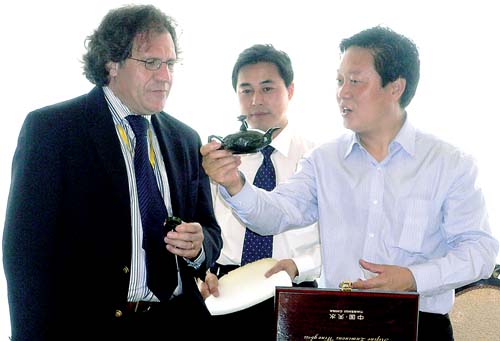 烏拉圭駐華大使路易斯·阿爾瑪格羅于6月22日應(yīng)邀出席了我市“2007(丁亥)年公祭中華人文始祖伏羲大典暨中國·天水伏羲文化旅游節(jié)”活動。副市長楊維俊會見了路易斯·阿爾瑪格羅大使,雙方進(jìn)行了親切友好的交談。(市外辦 攝)