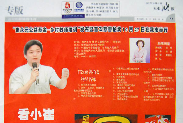 天水晚報刊發(fā)的“崔永元公益基金”慈善拍賣專版