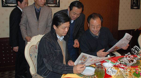 崔永元正在看天水日報刊發(fā)的“崔永元公益基金”慈善拍賣專版
