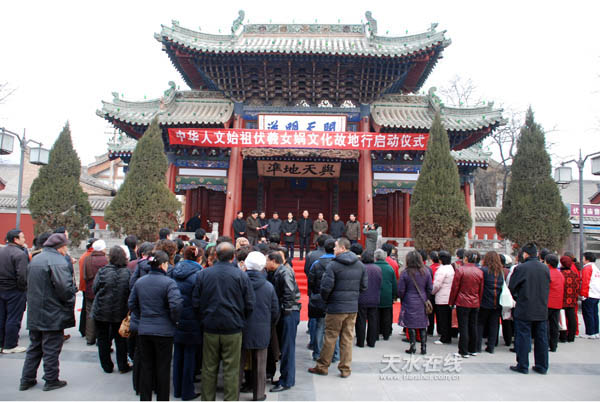 (1月7日,由天水市委、市政府和中華伏羲文化研究會共同發(fā)起的“中華人文始祖伏羲女媧文化故地行”考察活動在天水啟動)