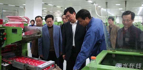 在蘭州卷煙廠天水分廠,張景輝深入生產(chǎn)第一線,認(rèn)真查看了企業(yè)的生產(chǎn)流程,詳細(xì)了解了企業(yè)的生產(chǎn)經(jīng)營(yíng)情況。張景輝指出,蘭州卷煙廠天水分廠作為我市的重點(diǎn)企業(yè)和利稅大戶,為天水的經(jīng)濟(jì)建設(shè)做出了重要貢獻(xiàn)。他要求全市相關(guān)部門努力解決企業(yè)發(fā)展中存在的困難和問題,為蘭州卷煙廠天水分廠的健康發(fā)展創(chuàng)造良好環(huán)境。他還希望蘭州卷煙廠天水分廠繼續(xù)發(fā)揚(yáng)與地方黨委、政府和上級(jí)主管單位密切聯(lián)系的優(yōu)良傳統(tǒng),加強(qiáng)內(nèi)部管理,調(diào)整產(chǎn)品結(jié)構(gòu),提高產(chǎn)品質(zhì)量,擴(kuò)大產(chǎn)品產(chǎn)能,加強(qiáng)安全生產(chǎn),努力使企業(yè)的生產(chǎn)經(jīng)營(yíng)水平再上新的臺(tái)階,為天水經(jīng)濟(jì)發(fā)展做出新的更大的貢獻(xiàn)。